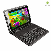 Zeepad which runs Google Android 4.2.2 Jelly Bean, has a 1.2 GHz processor, and 8GB of internal memory, which can be expanded to 32GB with an external micro SD card. It runs on WiFi only, so no extra monthly fees required. Comes in pink, black, and white and comes with multiple accessories, including the keyboard screen protector, but the battery life is extremely limited.